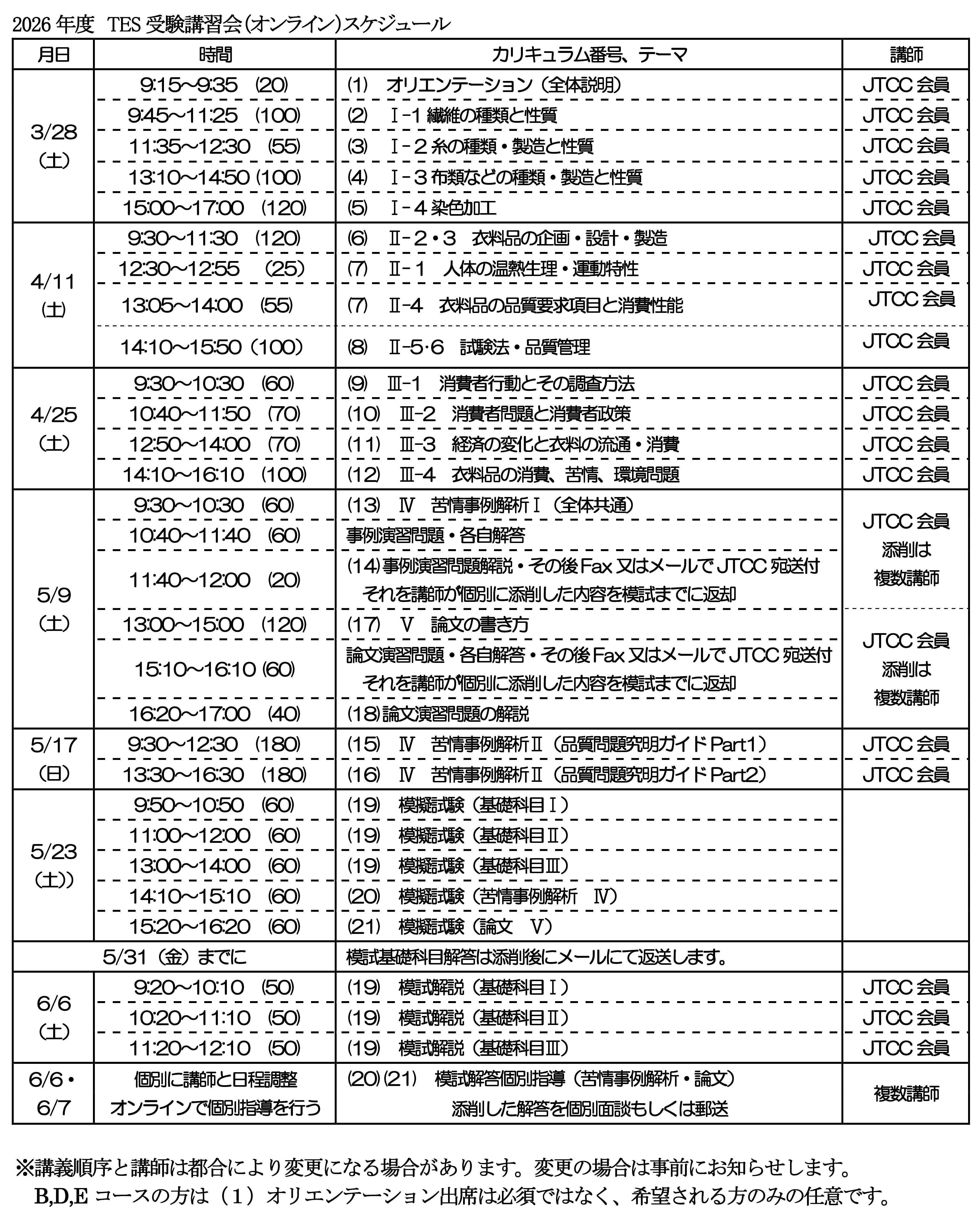 JTCCではTES試験を受験される方を対象に「TES受験講習会」をオンライン方式で開講いたしますのでご案内申し上げます。TES(Textiles